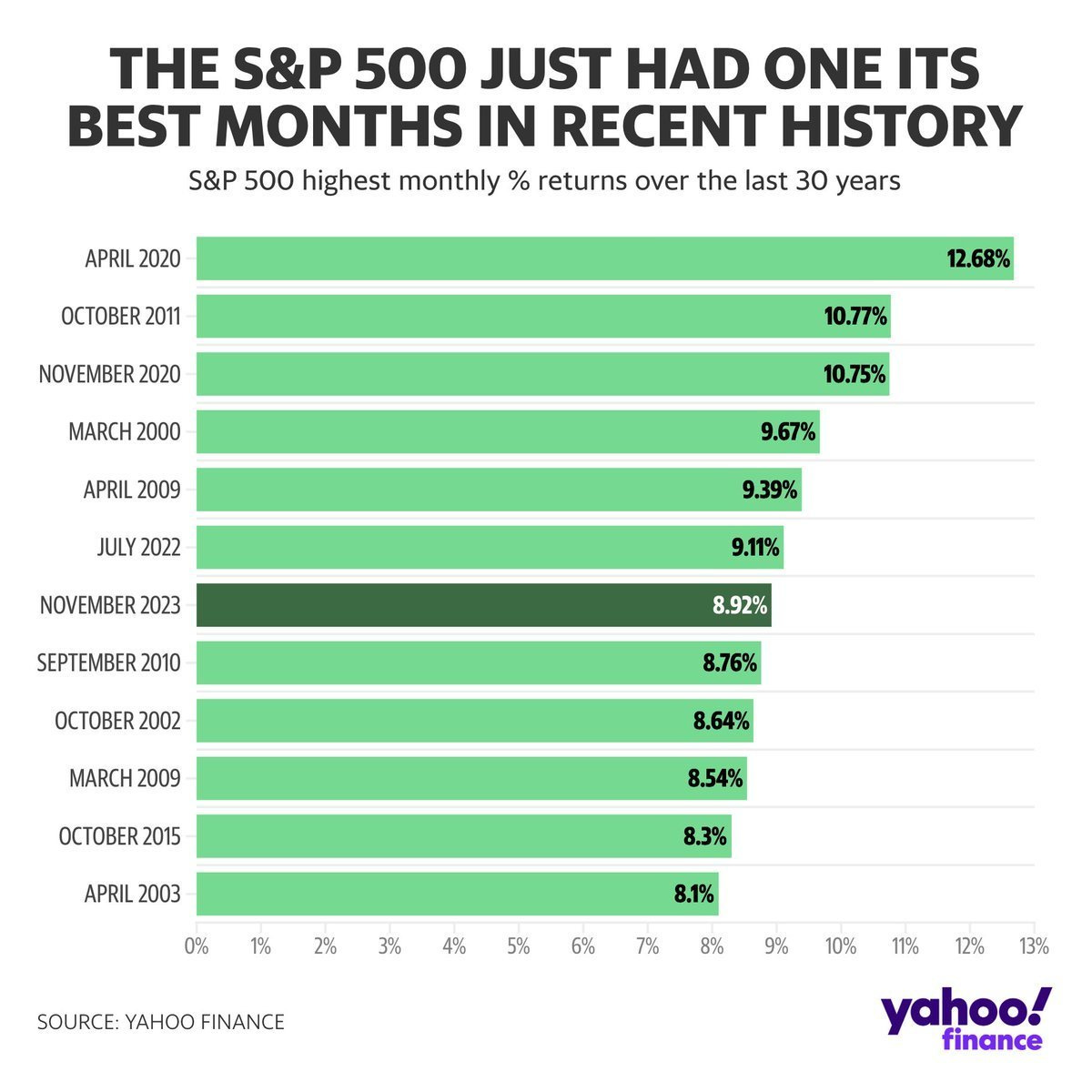 Good evening. The S&P 500’s return in November ranks among the top 10 monthly performances in recent history – and we’ve been riding it since it bottomed!