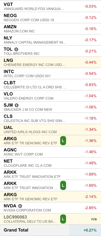 NVDA 0.00%↑ ARKK 0.00%↑ and ARKG 0.00%↑ detracted from performance today: