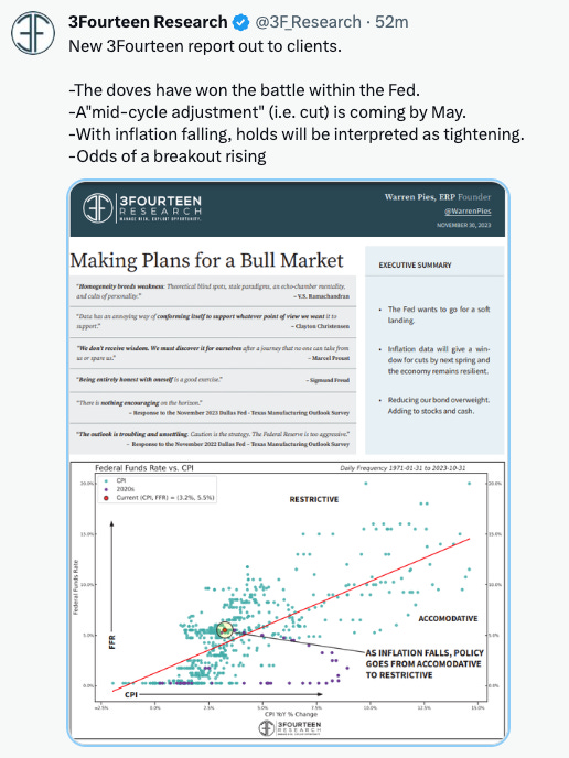 And as they say, narratives follow price. Sure enough, we’re seeing analysts upgrading their economic and market forecasts for 2024 and there will be many more to come: