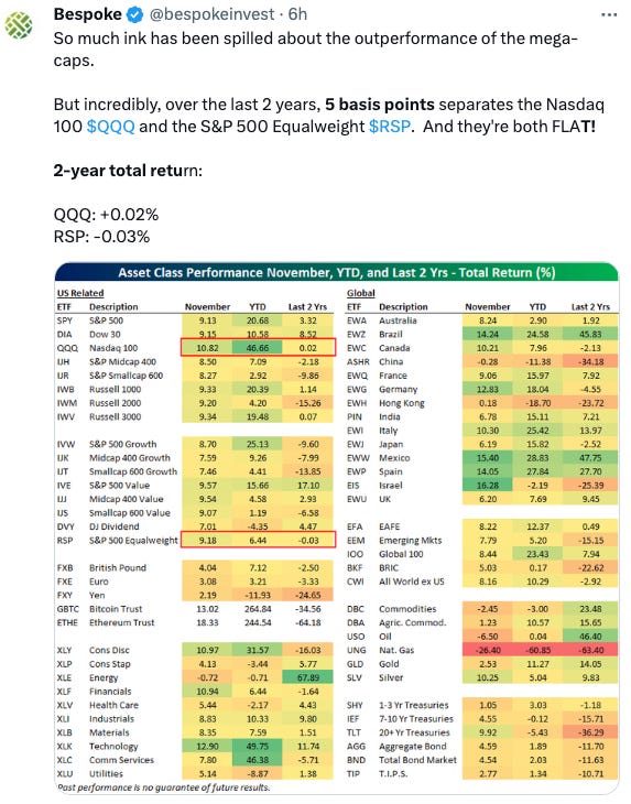 There will also likely be some rotation from the mega-caps to small-caps and from the market-cap S&P SPY 0.00%↑ to the equal-weight S&P RSP 0.00%↑.