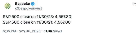 But here’s where it gets more interesting: if you were a buy-and-hold investor in the SPY 0.00%↑, you’ve essentially seen no returns apart from dividends in the last 2 years: