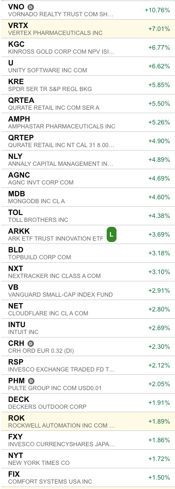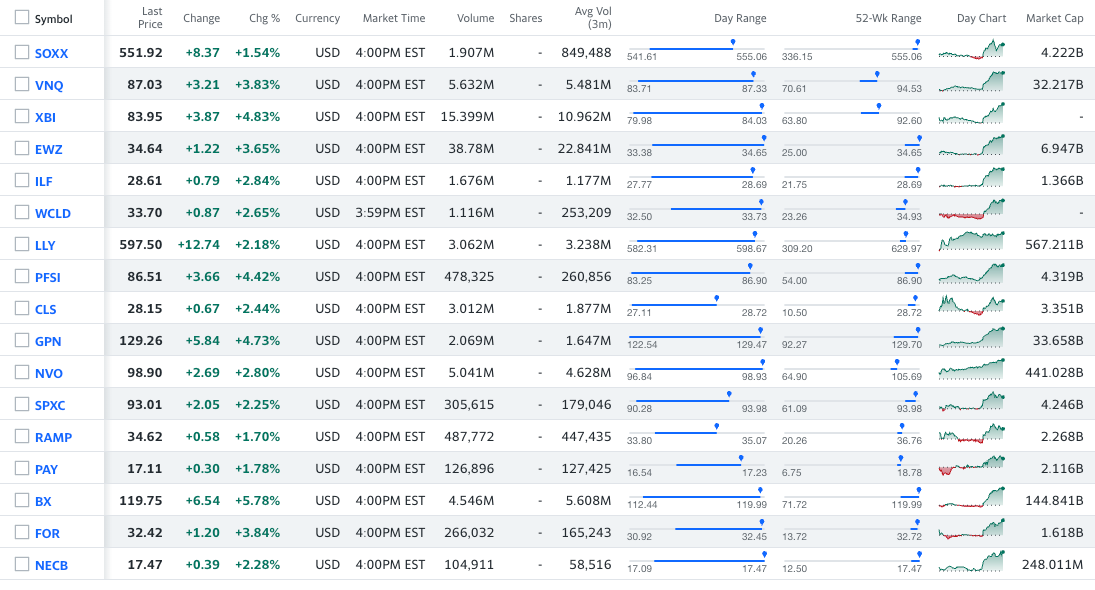 ETFs: SOXX 0.00%↑ VNQ 0.00%↑ XBI 0.00%↑ EWZ 0.00%↑ ILF 0.00%↑ WCLD 0.00%↑