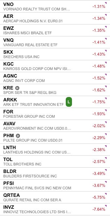 We have been heavily tilted towards small caps and risk-on tickers so Friday was a down day for us. Some of the volatility was expected as well, it being the monthly options expiry for December. We did manage to see some winners although they were outweighed by the losers:
