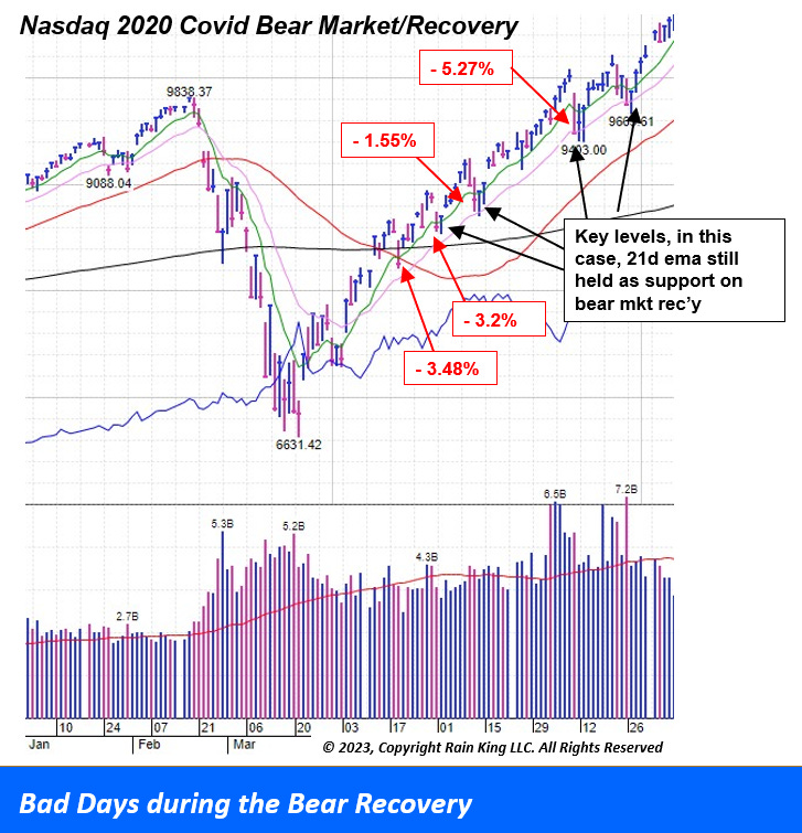 Good evening! Today was a brutal day in the markets, and we were not spared in our portfolio either. But to put today’s trading day in the context of the bigger picture, it is not uncommon to have sharp daily pullbacks of even 3% during bull markets. Here are some examples from past powerful rallies:
