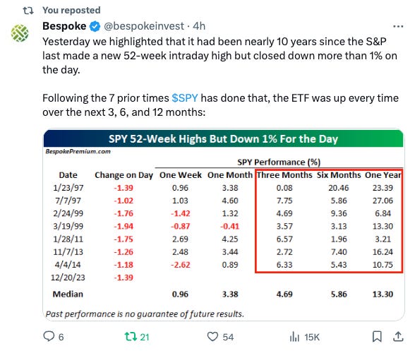 Here’s an interesting historical perspective on dips like yesterday’s: