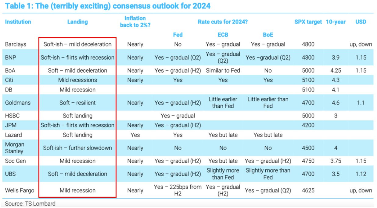 As for 2024, a slowdown seems to be the consensus on the street (except for Goldman Sachs, who were incidentally the only major bank to get this year’s forecast right):