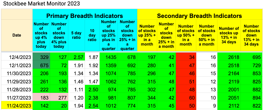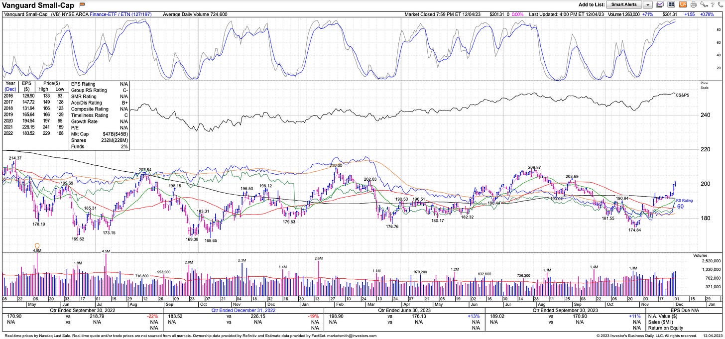 The improvement in breadth is a result of money rotating away from the Mag-7 / mega-caps / market-cap weighted indices such as QQQ 0.00%↑/ SPY 0.00%↑ and into the small-cap ETFs such as IWM 0.00%↑ / VTWO 0.00%↑ / VB 0.00%↑ and equal-weighted indices such as RSP 0.00%↑. Those charts are improving and showing momentum now: