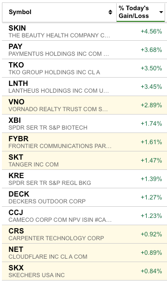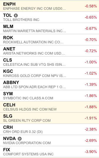 As we discussed yesterday, we’ve exited out of VOO 0.00%↑ and VGT 0.00%↑ in our trading portfolio (we still hold it in our long-term portfolio). Here are our holdings that moved the most today. Those highlighted in yellow are today’s buys/additions: