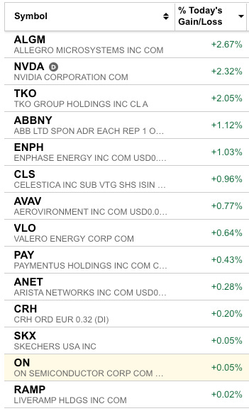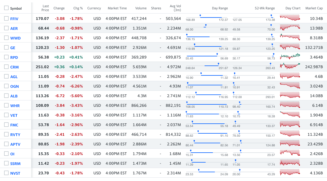 Short: AGL 0.00%↑ OGN 0.00%↑ ALB 0.00%↑ WHR 0.00%↑ VET 0.00%↑ FMC 0.00%↑ RVTY 0.00%↑ APTV 0.00%↑ OI 0.00%↑ SSRM 0.00%↑ NVST 0.00%↑