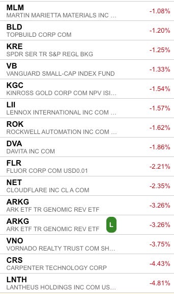In our portfolio, we trimmed our exposure to VOO 0.00%↑ and VGT 0.00%↑ (which were our largest holdings) along with the mega-caps in the last couple of days, and have brought our net-long exposure down to 54%. Despite that, being long means that we’ve also taken a hit along with the market. Here are the positions that moved the most today: