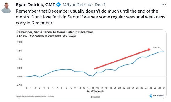 As we shared in our Dec 1 update, and to repeat it here, the first half of December can be expected to have ups and downs, and it’s really in the second half that we tend to see gains:
