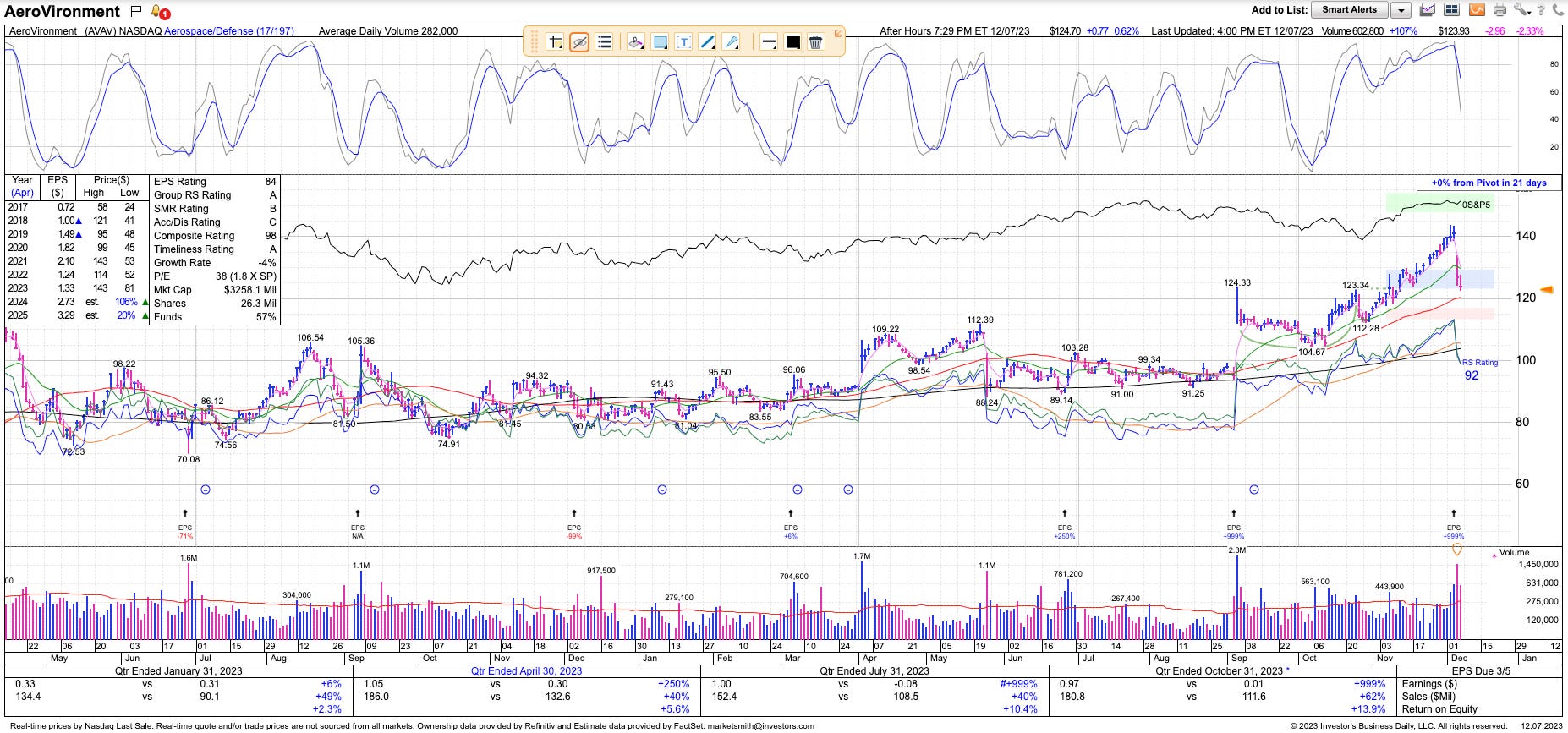 AVAV 0.00%↑ is interesting because it reported strong results and is in the defense sector (military drone manufacturer) but had a severely negative reaction: