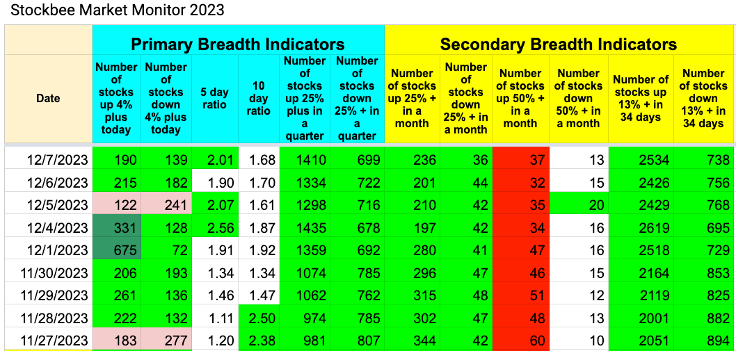 We continue to be in an uptrend and breadth is also strong. The most important dates and factors that can make or break the rally are the ones we highlighted in this chart from Factset earlier: