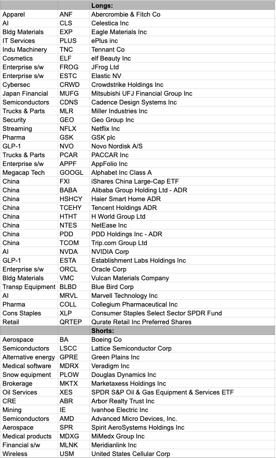 Here are the names we’re watching to enter based on price action. Most of these are either China-linked or bets on falling rates: