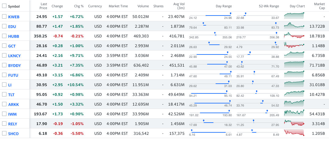 Long: KWEB 0.00%↑ EDU 0.00%↑ HUBB 0.00%↑ GCT 0.00%↑ $LKNCY $BYDDY FUTU 0.00%↑ LI 0.00%↑ TLT 0.00%↑ ARKK 0.00%↑ IWM 0.00%↑