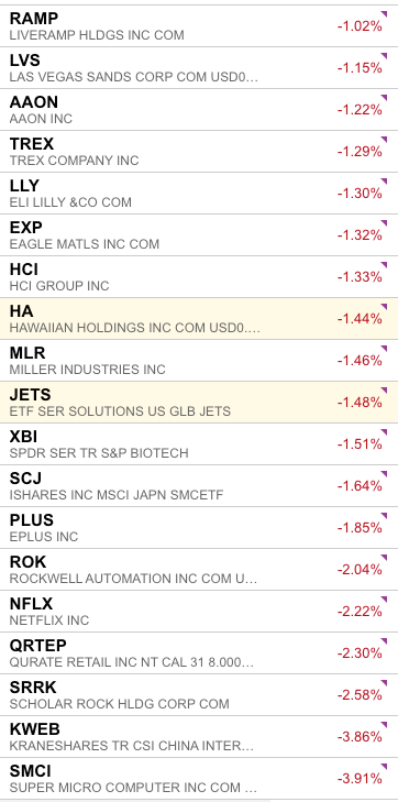 For tomorrow, we have a lot of short candidates that we’re looking at. A lot of these are rate-sensitive sectors that ran up on hopes of rate cuts. If rates and the dollar start moving upward, these will be impacted the most: