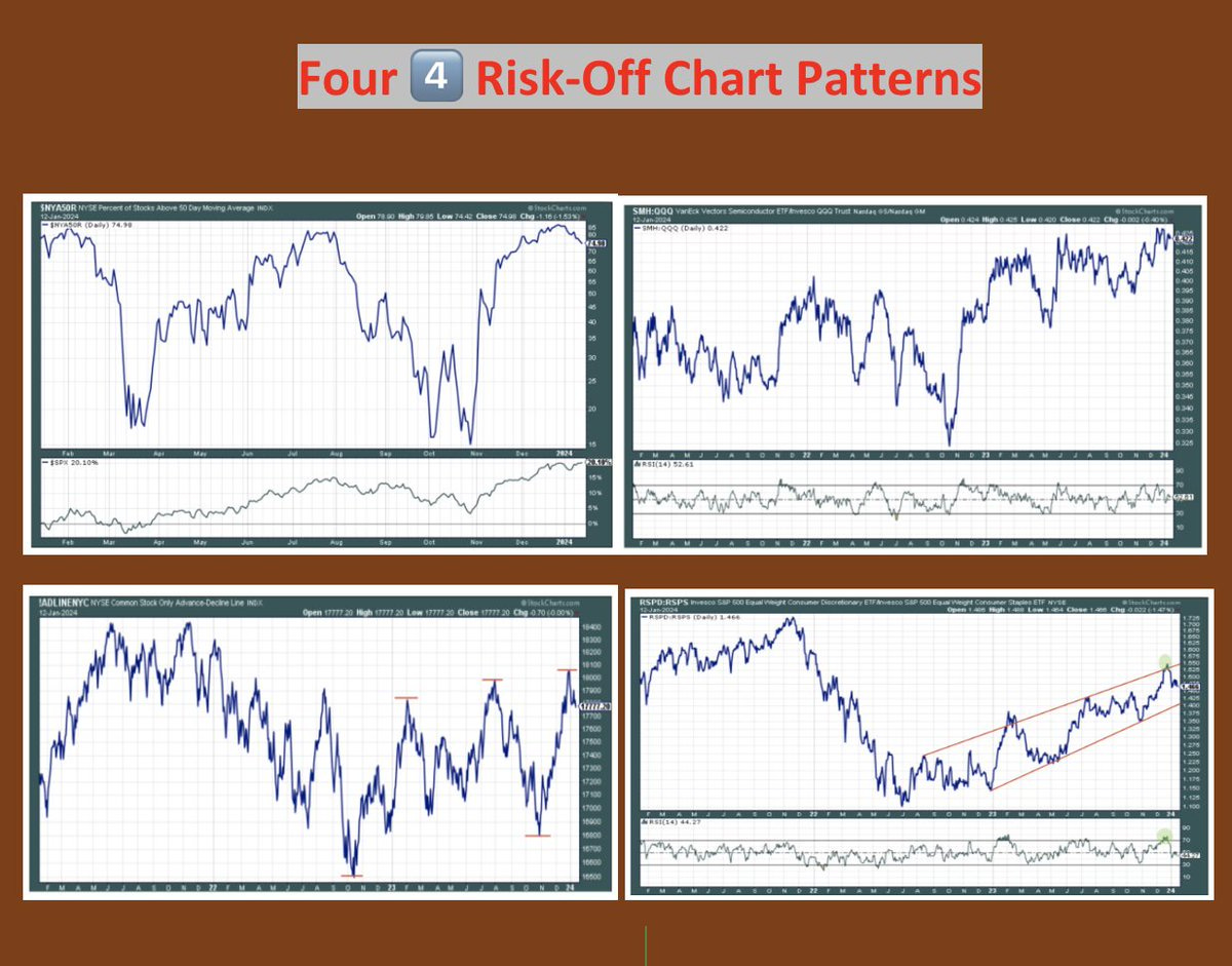 Good evening! We are seeing several warning signs flash. We might be forming a near-term top, and defensive strategies will likely be needed for the next few weeks.