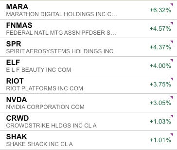 Our portfolio also dipped along with the SPY 0.00%↑ today. Here are the major movers: