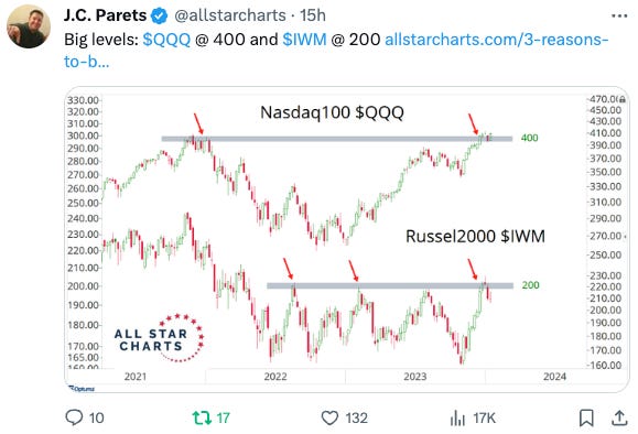 From a sentiment perspective, many permabears have thrown in the towel turning bullish while those who got a lot of things right are turning more cautious: