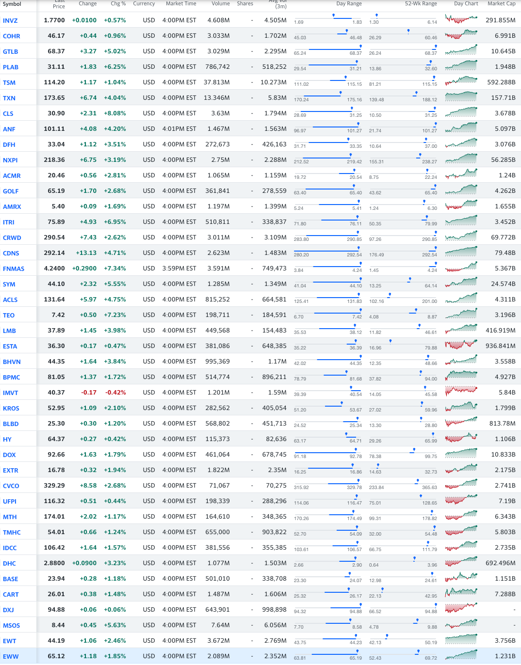 Stocks: INVZ 0.00%↑ COHR 0.00%↑ GTLB 0.00%↑ PLAB 0.00%↑ TSM 0.00%↑ TXN 0.00%↑ CLS 0.00%↑ ANF 0.00%↑ DFH 0.00%↑ NXPI 0.00%↑ ACMR 0.00%↑ GOLF 0.00%↑ AMRX 0.00%↑ ITRI 0.00%↑ CRWD 0.00%↑ CDNS 0.00%↑ $FNMAS SYM 0.00%↑ ACLS 0.00%↑ TEO 0.00%↑ LMB 0.00%↑ ESTA 0.00%↑ BHVN 0.00%↑ BPMC 0.00%↑ IMVT 0.00%↑ KROS 0.00%↑ BLBD 0.00%↑ HY 0.00%↑ DOX 0.00%↑ EXTR 0.00%↑ CVCO 0.00%↑ UFPI 0.00%↑ MTH 0.00%↑ TMHC 0.00%↑ IDCC 0.00%↑ DHC 0.00%↑ BASE 0.00%↑ CART 0.00%↑