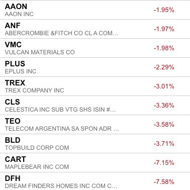 Today was a mixed bag with housing-related and other stocks dragging down performance from the winners (mostly AI-related):