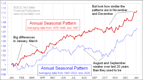 On the other hand, the seasonality points to a weak January, as shown in the chart below from Tom McClellan: