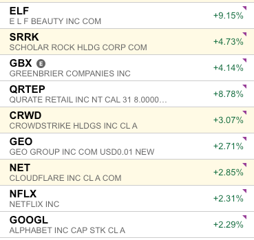 We had a good day along with the market, with several holdings rising more than 2% and just a couple falling by a bit.