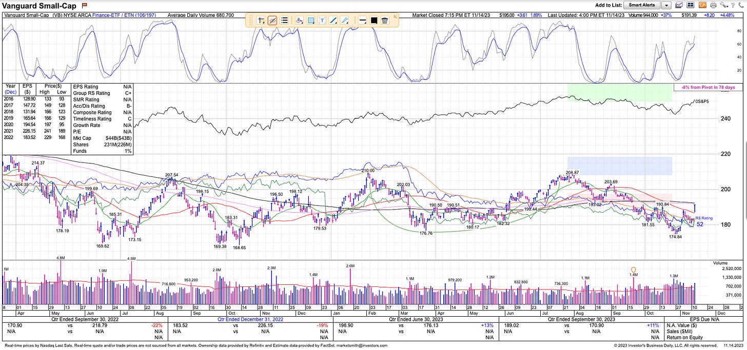 Most importantly, today saw a character change with small-caps / VB 0.00%↑ posting a vigorous up day on volume. A lot of this was short-covering since the most speculative stuff like ARKK 0.00%↑ rallied a lot, but there is also a rotation happening from the defensive sectors like large caps, healthcare, insurance, etc. to the beaten-down sectors like small-caps, solar, mortgage, homebuilders, regional banks etc.