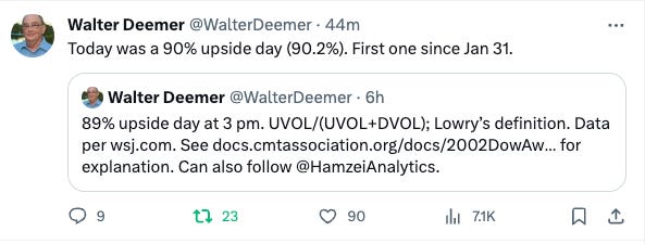 Strong rallies throughout on volume and greatly improved signs of market breadth: