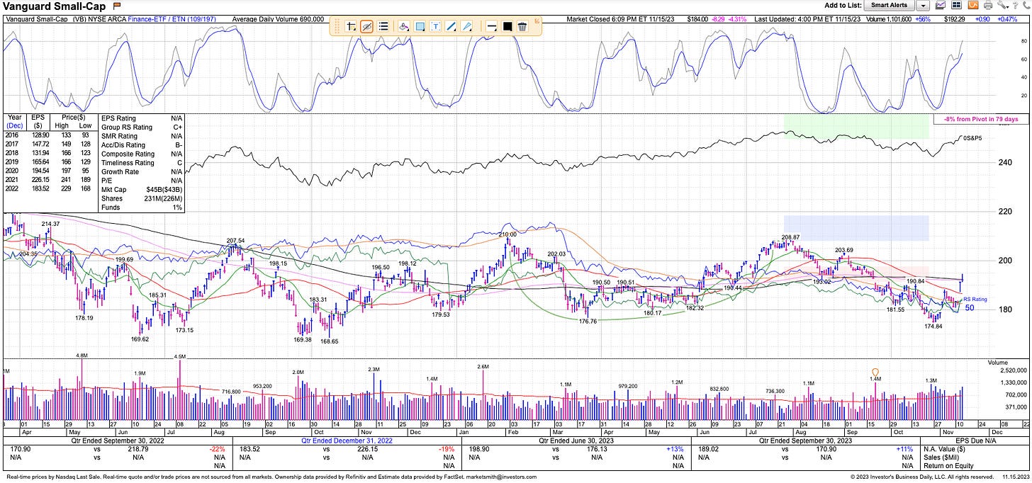 Small caps as represented by VB 0.00%↑ had another day of strong relative performance vs the above large cap indices.