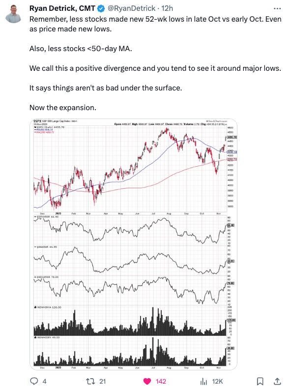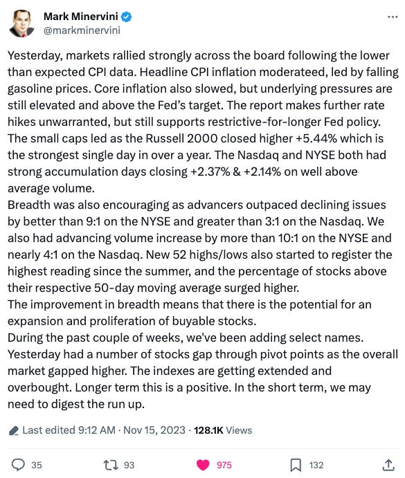 There is still a lot of money on the sidelines and a lot of fund managers who will need to chase this rally, so it has all the ingredients for a rally into year-end, maybe after a brief pause/dip in the near term.