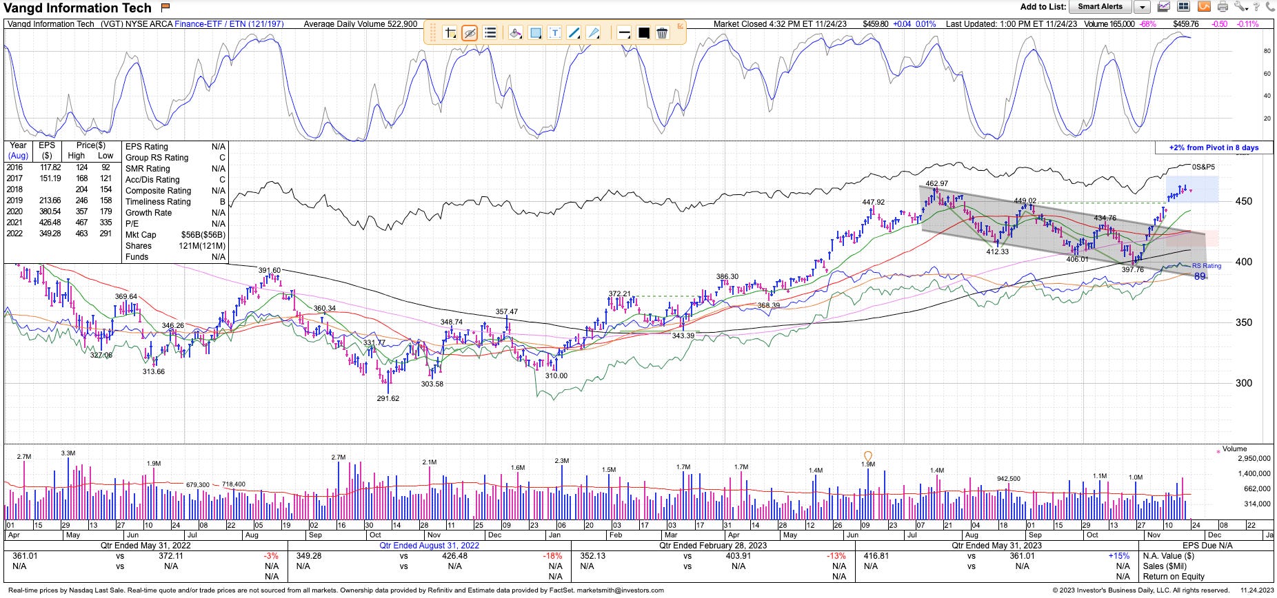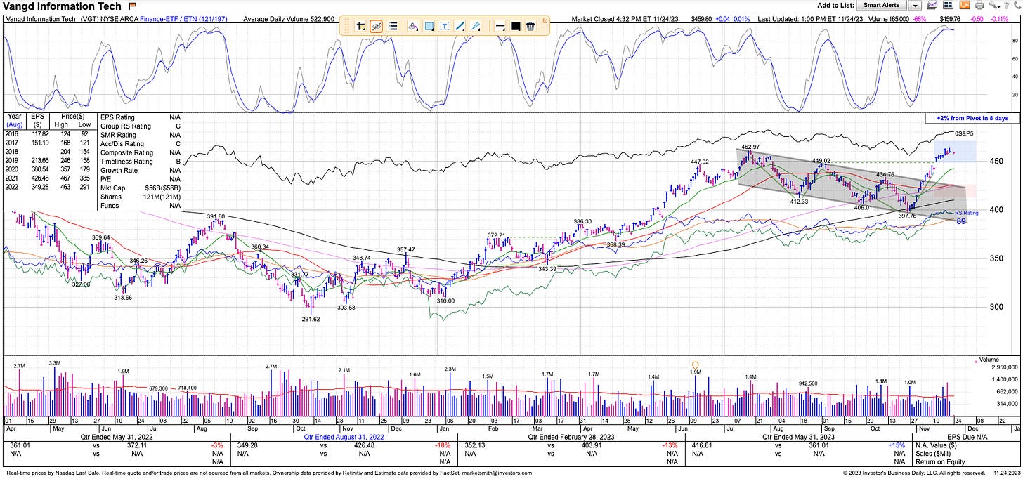 The Nasdaq as represented by our preferred ETF VGT 0.00%↑ is still in the buy zone:
