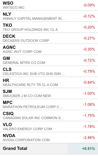 Good evening! The Minerva portfolio turned in a decent performance on Wednesday and Friday despite NVDA 0.00%↑ not performing well since earnings.