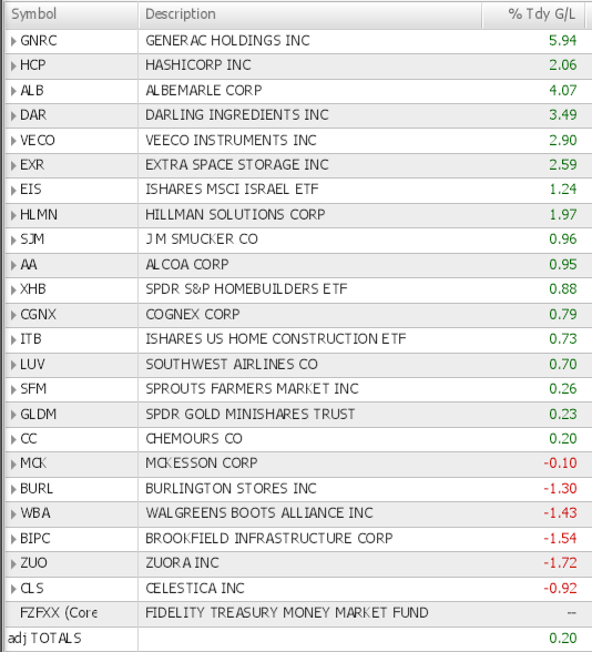 Here’s how the positions in the trading portfolio helped us deliver a +0.20% gain on Friday: