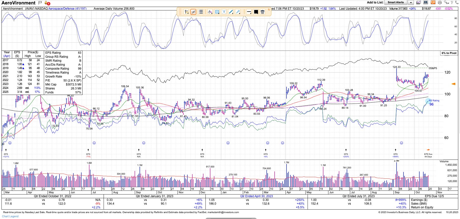 We continue to monitor AVAV to enter on the long side due to favorable price action and relative strength: