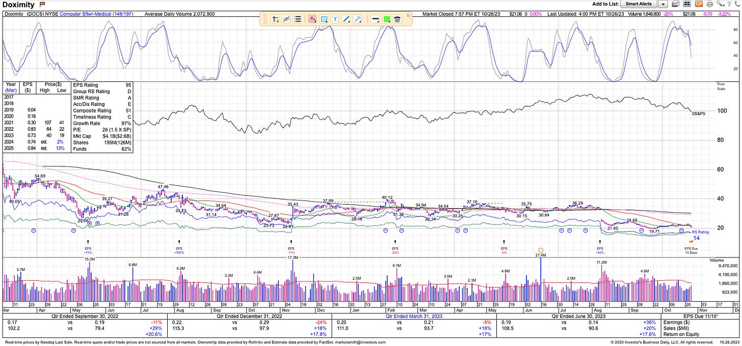 The DOCS 0.00%↑ short continues to print money for us, and should likely still see more downside as it hasn’t reached an oversold condition yet: