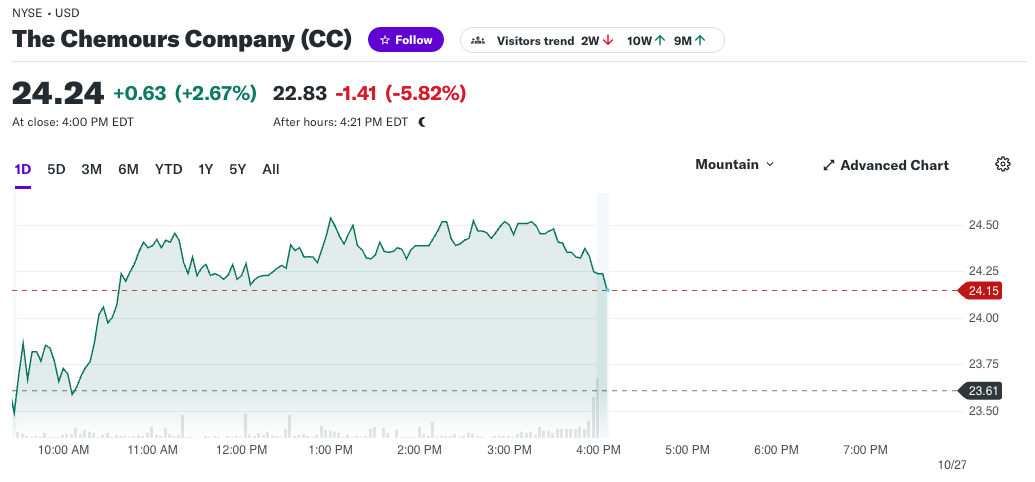 CC 0.00%↑ stock dropped after earnings and we may book a profit on it tomorrow based on how it behaves: