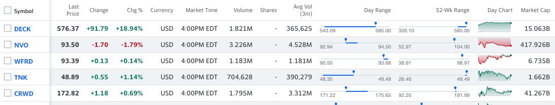 On the long side, we are watching DECK 0.00%↑ NVO 0.00%↑ WFRD 0.00%↑ TNK 0.00%↑ CRWD 0.00%↑